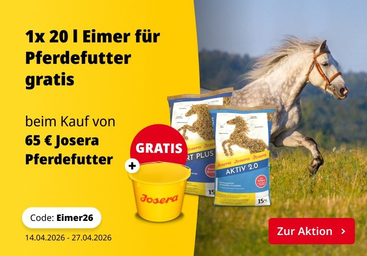 *Gültig im Aktionszeitraum vom 14.04. bis einschließlich 27.04.2026 und nur ab einem Einkaufswert von 65 €. Die Teilnahme an der Aktion ist nur einmal pro Person und Bestellung möglich und gilt nur im Josera Onlineshop unter www.josera.de. Ausgenommen sind Josera Hunde- und Katzenfutter sowie alle JOSI Produkte. Nur solange der Vorrat reicht.