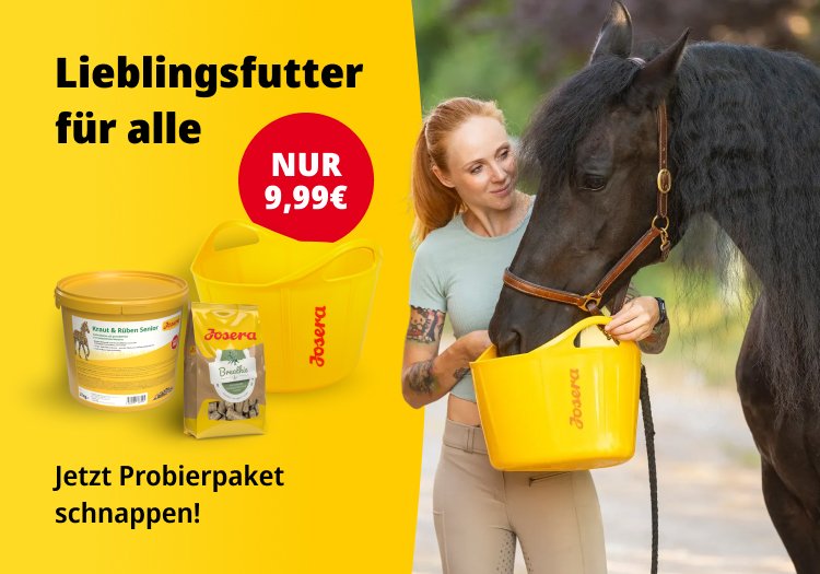 Hurra, Du hast soeben Dein neues Lieblingsfutter entdeckt! Ob Josera Kraut & Rüben Senior für die perfekte Altersvorsorge, Mash Rapid für die schnelle Schlabberei oder Produkt aus der Help-Linie für besondere Bedürfnisse: Bei Josera findest Du das richtige Futter für Dein Pferd in jeder Lebensphase. Hochwertig. Vollwertig. Und richtig lecker.