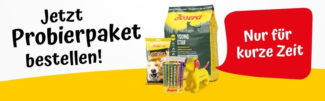 Vielen Dank, dass Sie sich für Josera Super Premium Hundefutter interessieren. Nur für kurze Zeit erhalten Sie unsere Probierpaket mit einem Warenwert von über 10 € für nur 4,99 €!*