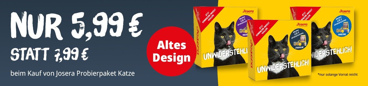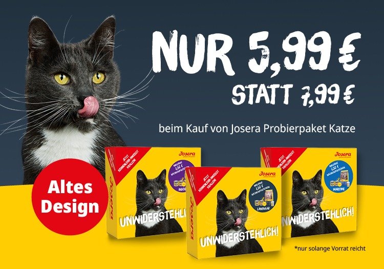Altes Design, altbekannte Qualität! Jetzt wird’s spannend für alle Probierfreudigen: Unsere Probierpakete im alten Design sind vom 03.03.2026 bis 29.03.2026 für nur 7,99 € statt 9,99 € im Sale erhältlich! Perfekt, um neue Sorten für Deine Katze zu entdecken.