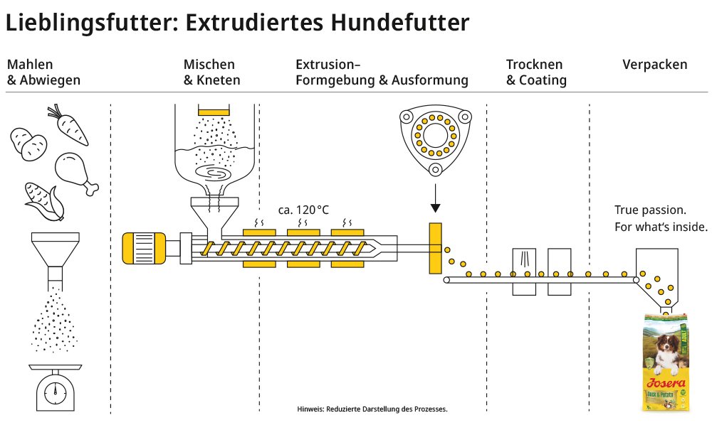 Im Vergleich: Herstellungsprozess von extrudiertem Hundefutter